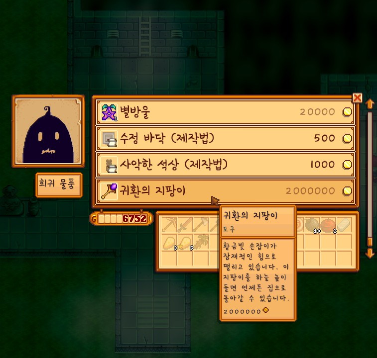 여기에는 귀환의 지팡이라는 것을 판매하는데, 이걸 본 순간 이제부터 악착같이 돈을 모으기로 결심했씁니다.